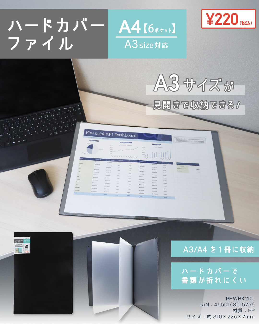 商品名:ハードカバーファイル ブラック 品番:PHWBK200 JAN:4550163015756