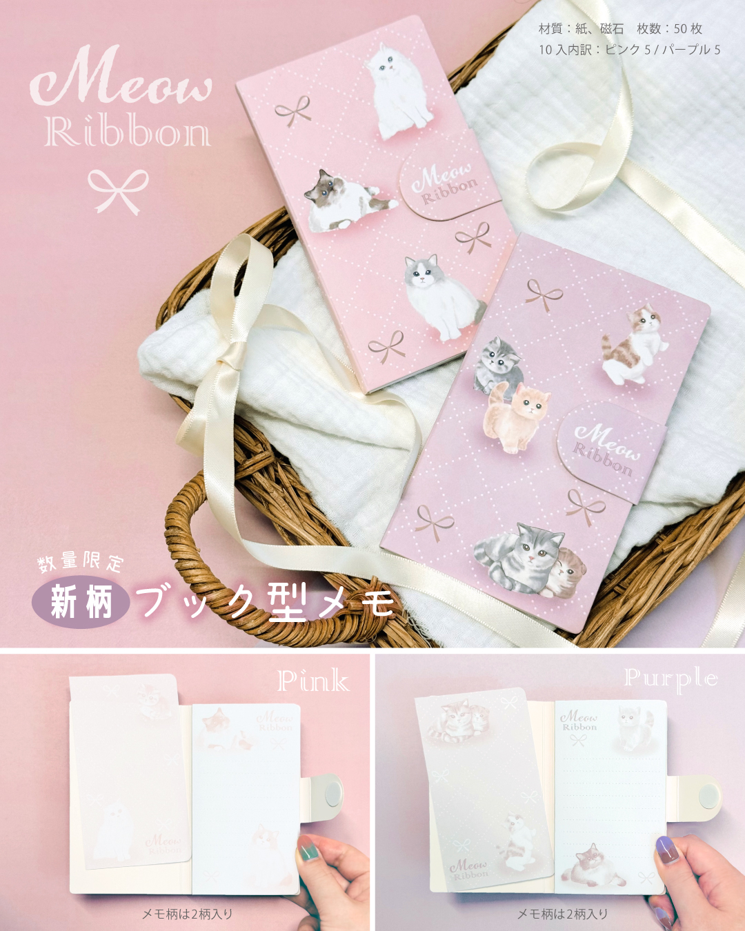 2025/10/27:セリア数量限定▶マグネット留めできるブック型メモに ネコとガーリーなリボンデザインが登場!