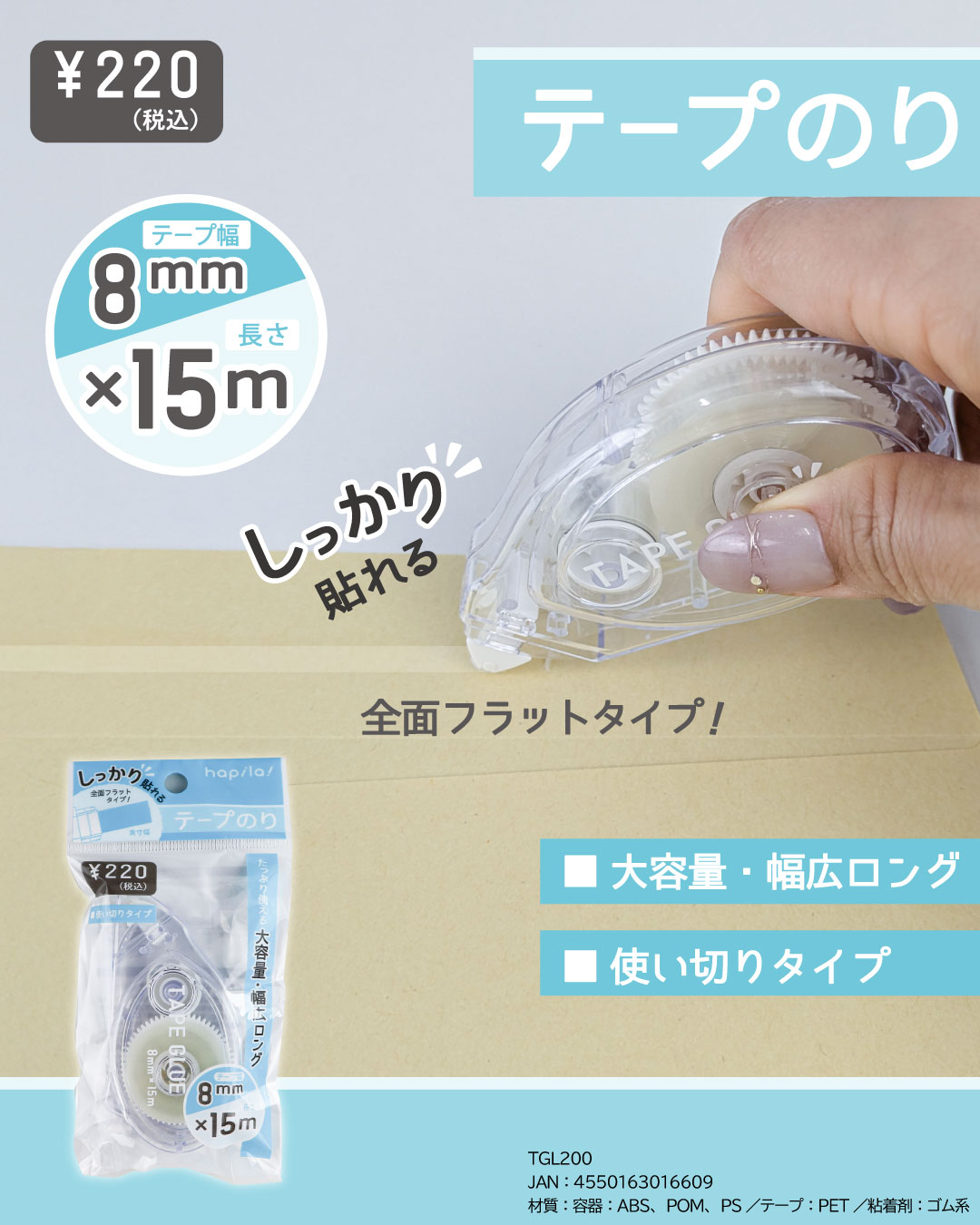 商品名:テープのり8mm×15m 品番:TGL200 JAN:4550163016609