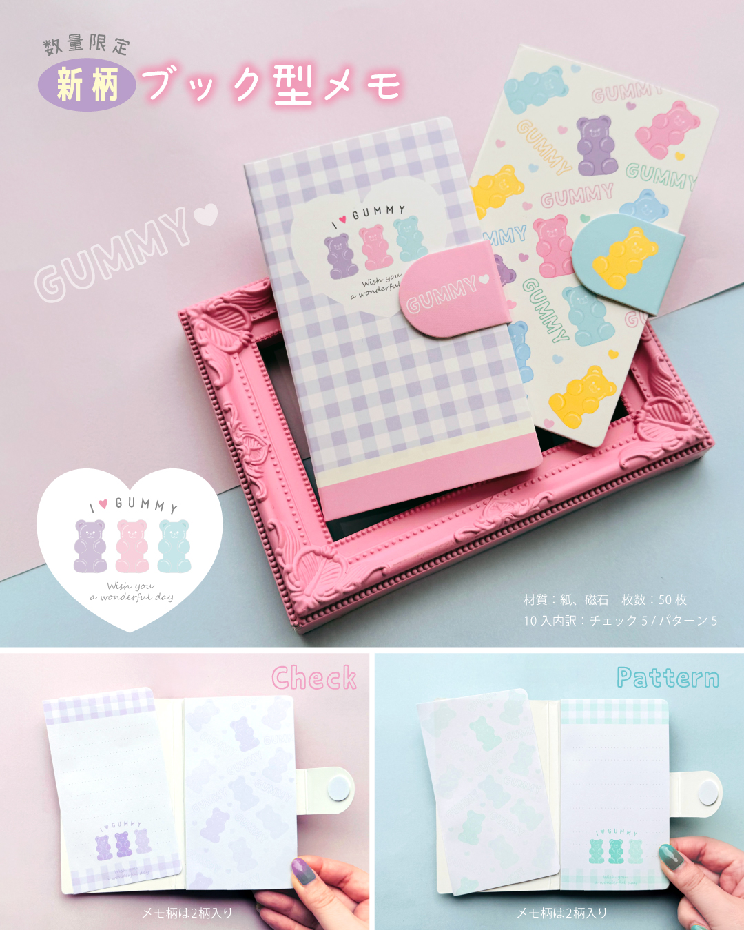 2026/01/15:セリア数量限定▶マグネット留めできるブック型メモに ポップなグミキャンディー柄が登場!
