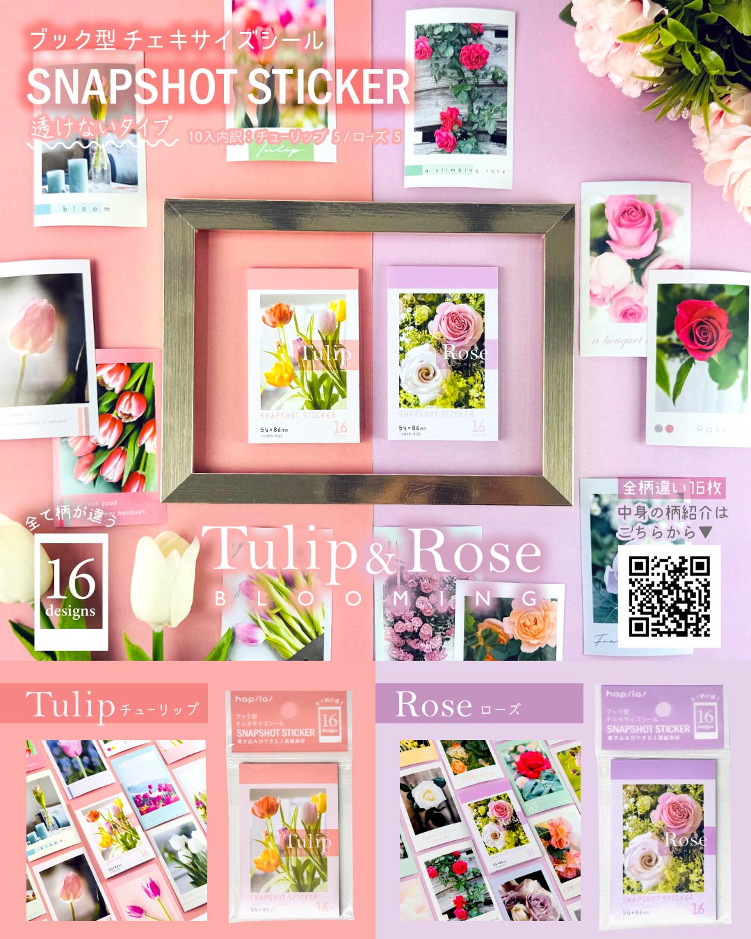 【新商品】ブック型チェキサイズシール Tulip/Rose