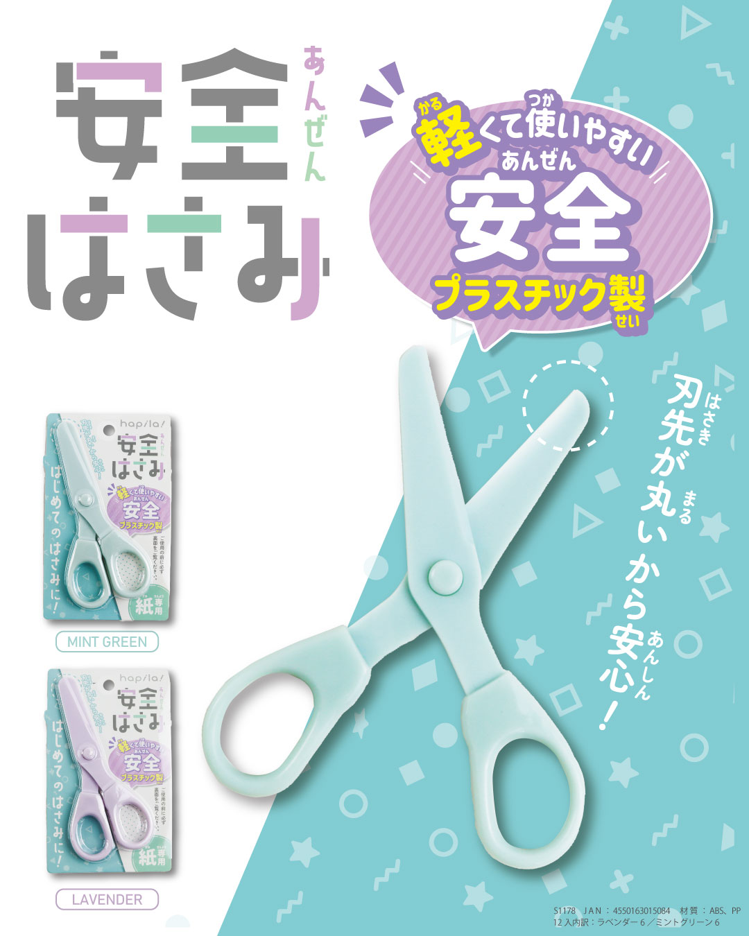 商品名:安全はさみ 品番:S1178 JAN:4550163015084