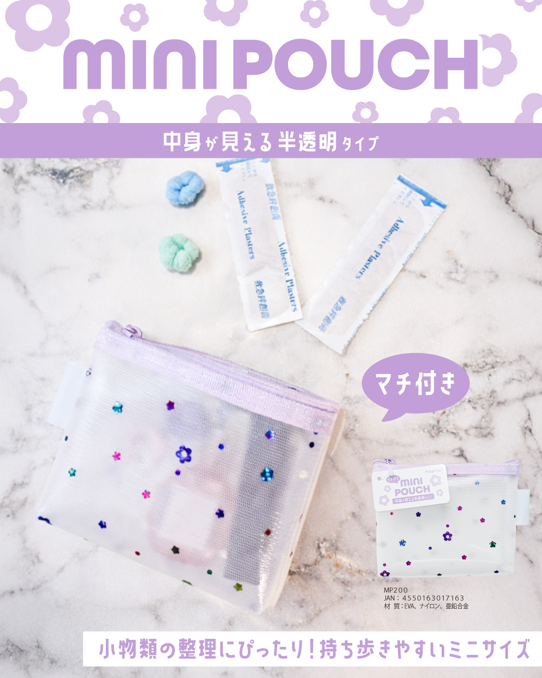 商品名:ミニポーチ花柄 品番:MP200 JAN:4550163017163