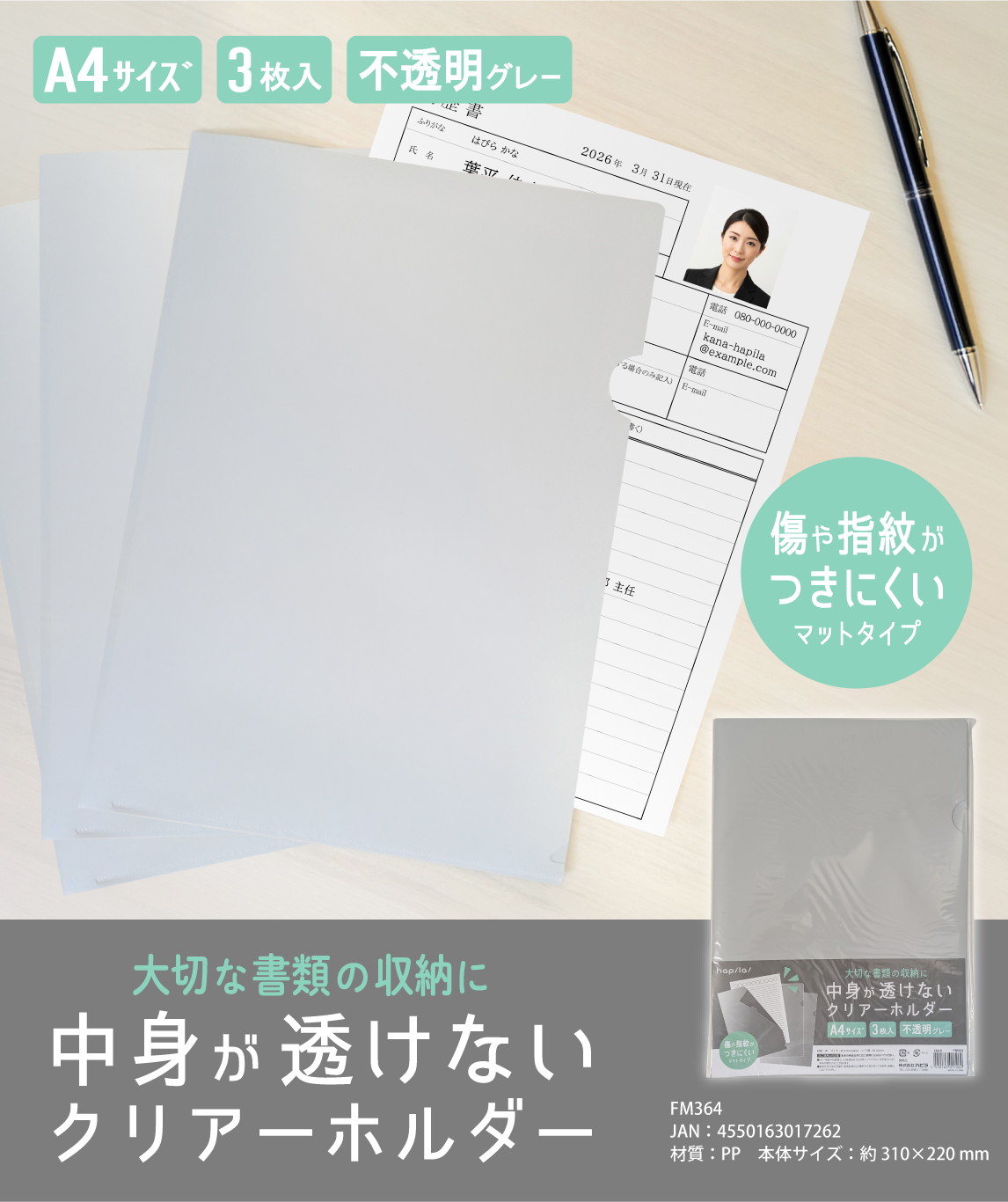 商品名:中身が透けないクリアーホルダーA4 3枚