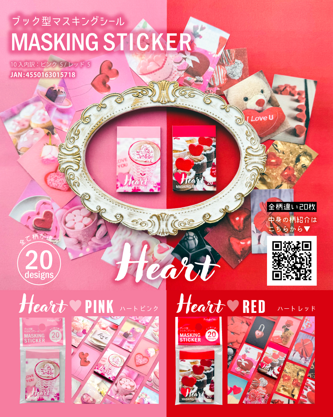 ▼王道ハートがたっぷり!ピンクとレッドのハートモチーフフォトシール