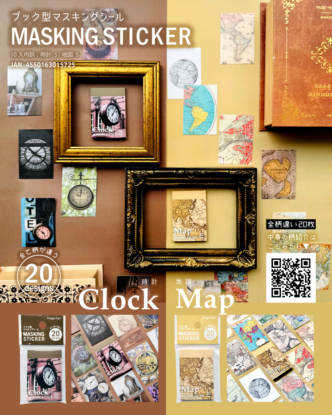 ▼ストーリーを感じさせる、時計と地図のエモフォトシール