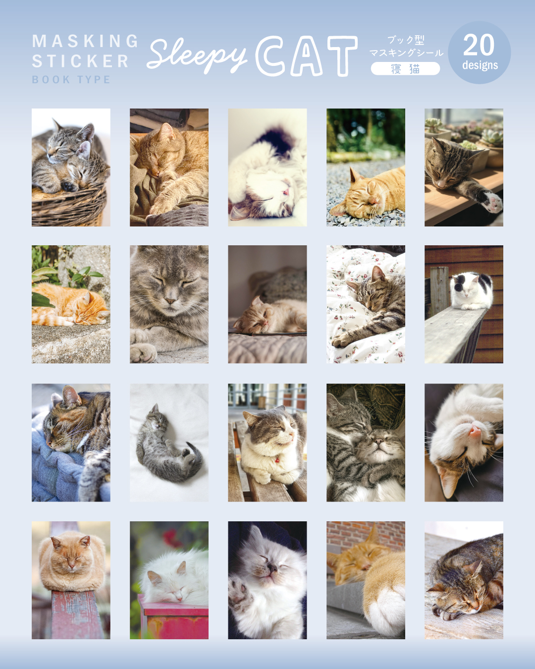 ブック型マスキングシール 寝猫/笑犬