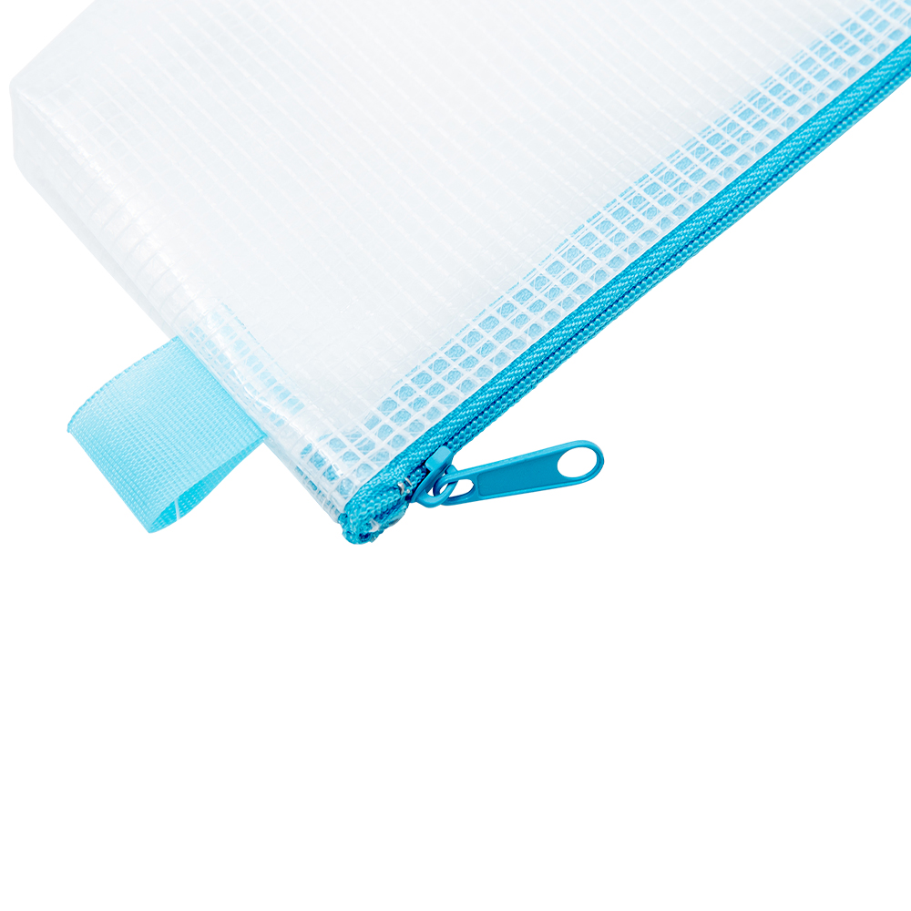 ペンサイズの透明ケースで筆記用具の収納に最適。中身が見えて細かいものの整理に便利。丈夫なメッシュ入り素材で繰り返し使える通い袋にも◎。カラーを組み合わせれば用途別に分類可能です。