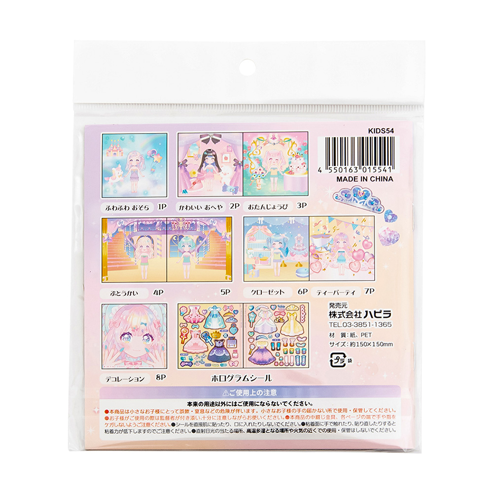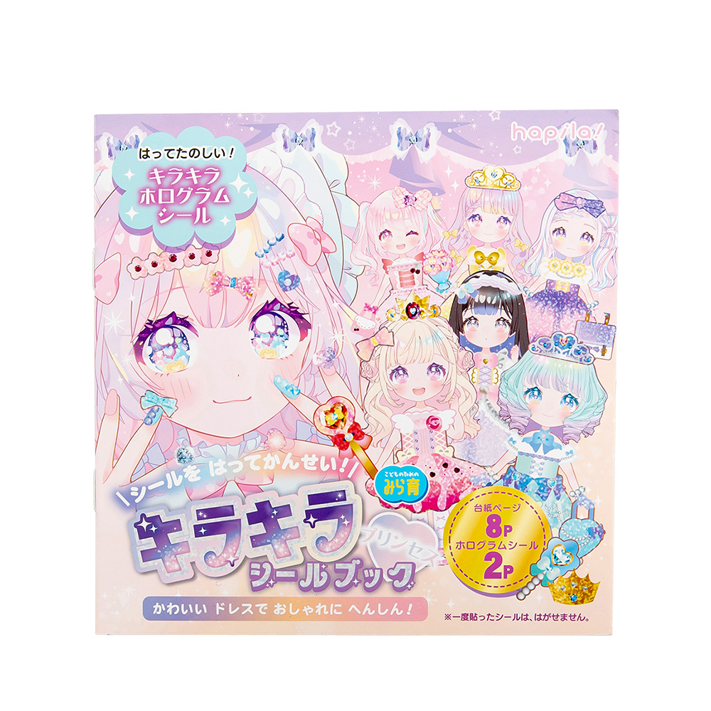 ホログラムシールを女の子や背景に貼って遊ぶシールブックです。※一度貼ったシールは剥がせません。