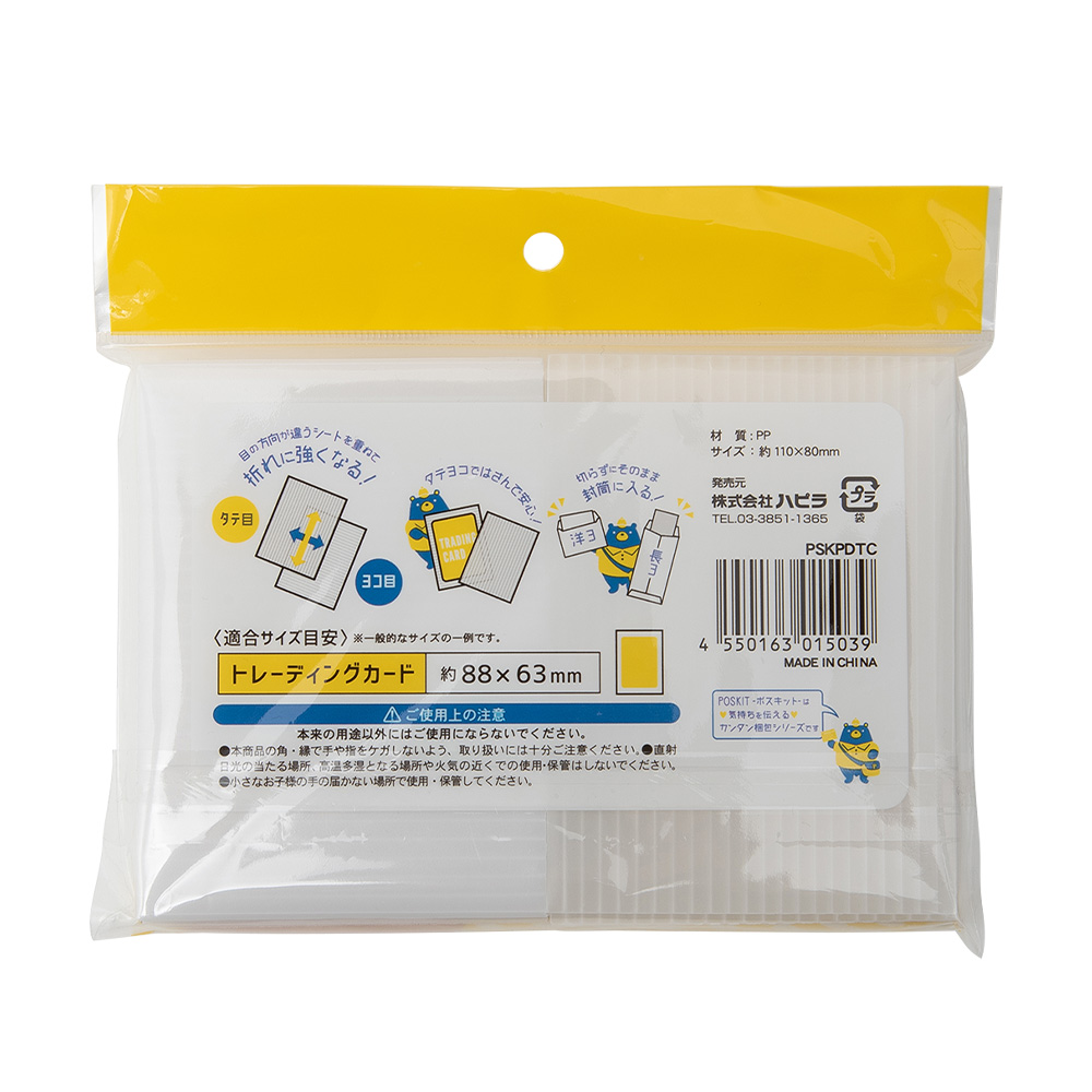 トレーディングカードサイズにカットされたプラダンシート。タテ方向とヨコ方向を組み合わせて、折り曲げに強い梱包が可能です。