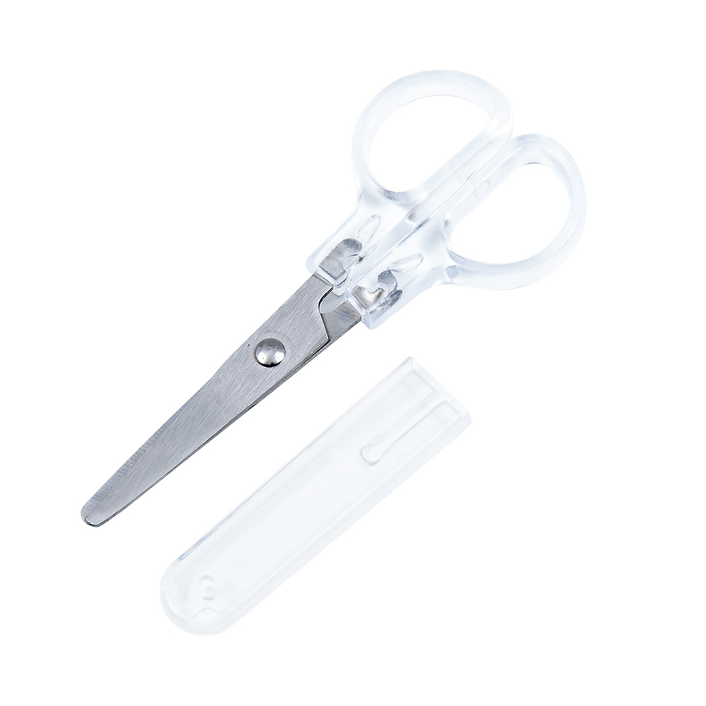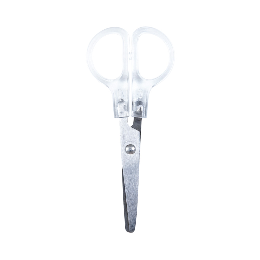携帯に便利なキャップ付きのクリアーはさみです。
